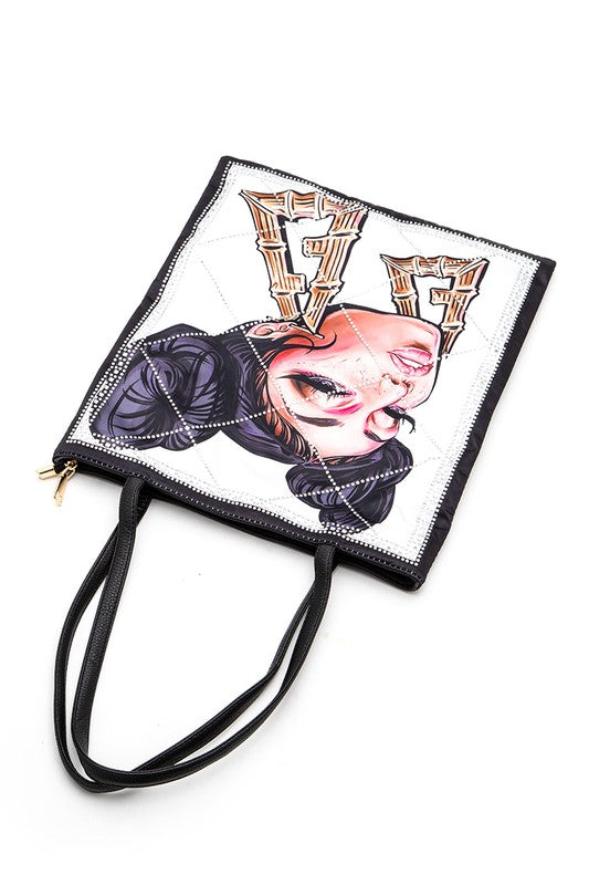 Crystal Embellished Cool Girl Print Tote Bag