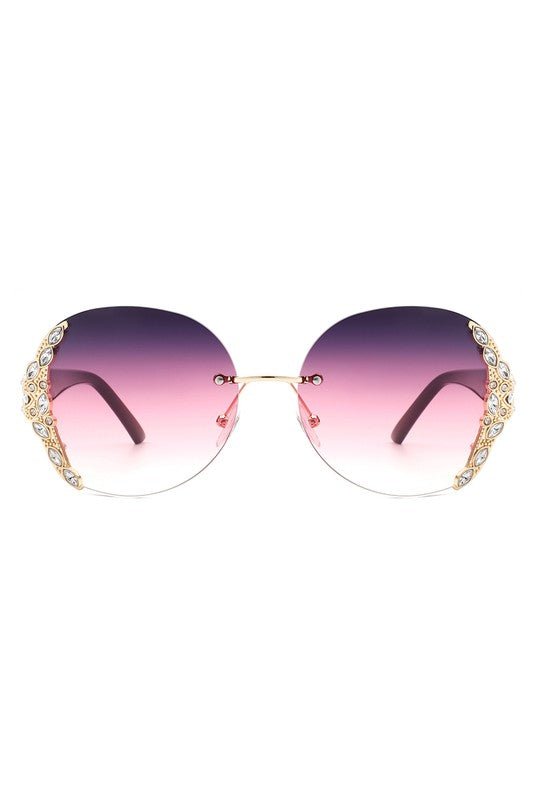 Women Rimless Round Rhinestone Oversize Sunglasses