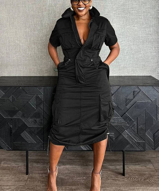 Multi-pocket Cargo Drawstring Pocket Dress for Casual Style